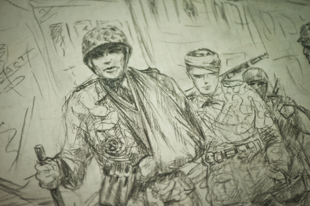A group of German Prisoners of War are marched through the streets of Bologna in 1945.