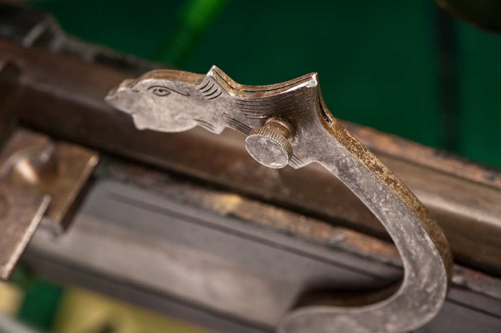 Matchlock Rifle detail. It is known that some of the citizens of Enniskillen who rallied to the defence of their town in 1688-89 were armed with matchlock rifles.