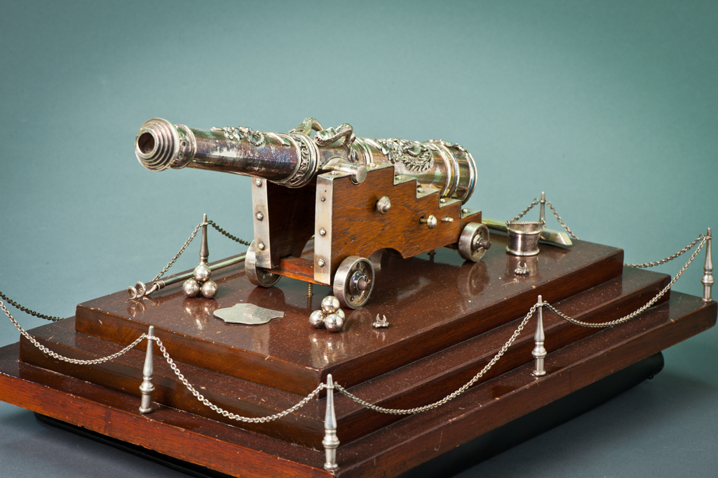 Throughout the siege, the people of Malta refused to surrender to the Axis Forces and in recognition of this, King George VI awarded the George Cross to the island. The islanders knew that they could not have survived without the steadfast Royal Irish Fusiliers who suffered significant casualties, twenty-one of whom are buried in Malta’s war cemeteries. In appreciation, three of the main villages presented gifts to the Regiment, the village of Naxxar presented this silver model of an ancient Maltese cannon. Today, The Royal Irish Regiment continues to carry the distinction MALTA 1940 on the Queen's Colours.