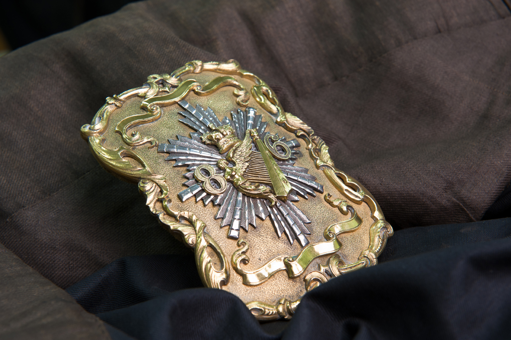 This very ornate silver and silver gilt cross belt plate dates from c1850 and is reminiscent of the French Rococo style of the 17th century. It was worn by officers of the 86th Foot.