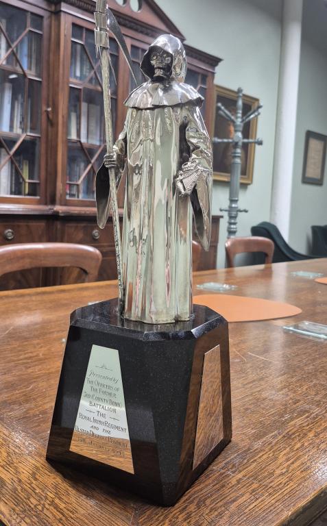 The Grim Reaper forms the centerpiece each time the former officers dine. In time (inevitably), the Roselawn Club will cease to exist and, in this event, it is the will of the members of the club that this unique piece will pass into the ownership of UNTOLD: The Collections & Archives Ltd. It will be showcased in UNTOLD Stories of the Irish in the British Army.