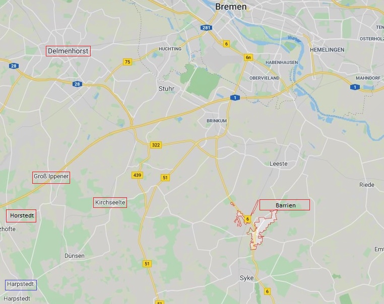 This loss of an almost complete patrol, and its commander, was a difficult loss for 2 RUR, but Lt Harris’s patrol had located a number of positions indicating that a company-strong force was defending Grosse Ippener, and when combined with the information gathered by the other two patrols, contributed much to the intelligence on the locations, strength and firepower of the enemy covering Delmenhorst. Heavy losses were therefore avoided in the careful planning made for the subsequent approach and capture of Delmenhorst by another Brigade as 9 Brigade was shifted east to the general area of Barrien, preparatory to attacking Bremen from the south.