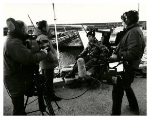 | Lieutenant Colonel W S D Burke, Commanding Officer 2nd Battalion The Royal Irish Rangers being interviewed by the press shortly after arrival in the Falklands. |
