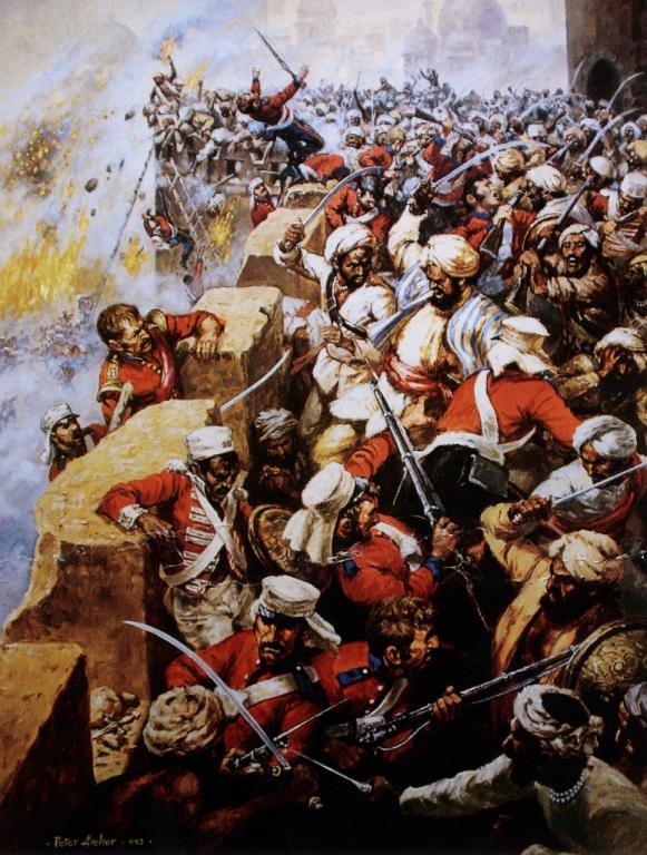 | The Light Company 86th (Royal County Down) storm the walls of Jhansi. |