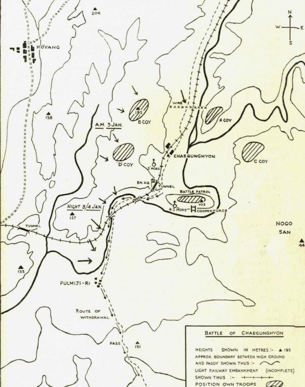 The following account of the battle is an extract from a regimental history and follows on from the event recorded for 3 January 1951.